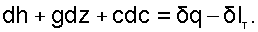 Продифференцировав уравнение 3.5, получается выражение первого закона термодинамики для 1 кг потока вещества в дифференциальном виде