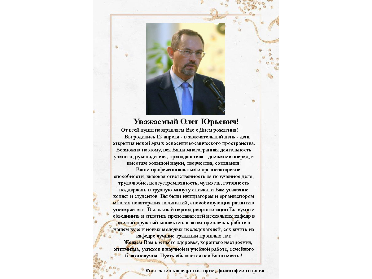 Желаем нашему коллеге, замечательному человеку, преподавателю и ученому дальнейших успехов и новых достижений!