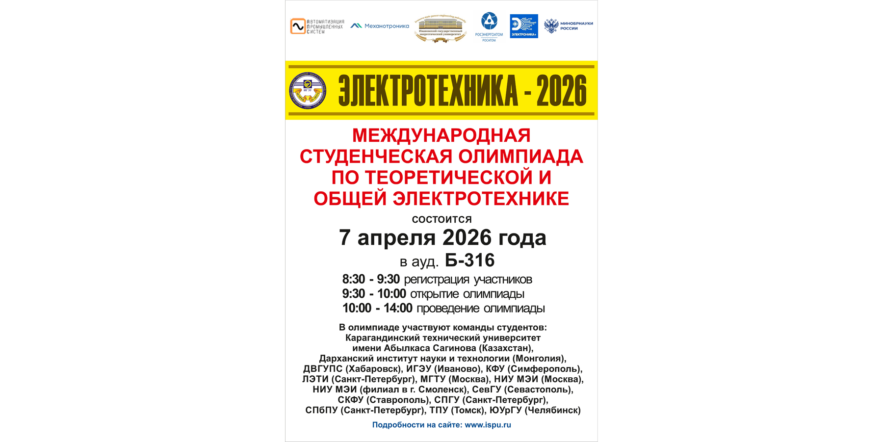Открытая студенческая олимпиада «Релейная защита в сфере оперативно-диспетчерского управления», 16-17 марта 2026 г. (ИГЭУ, Д-305)