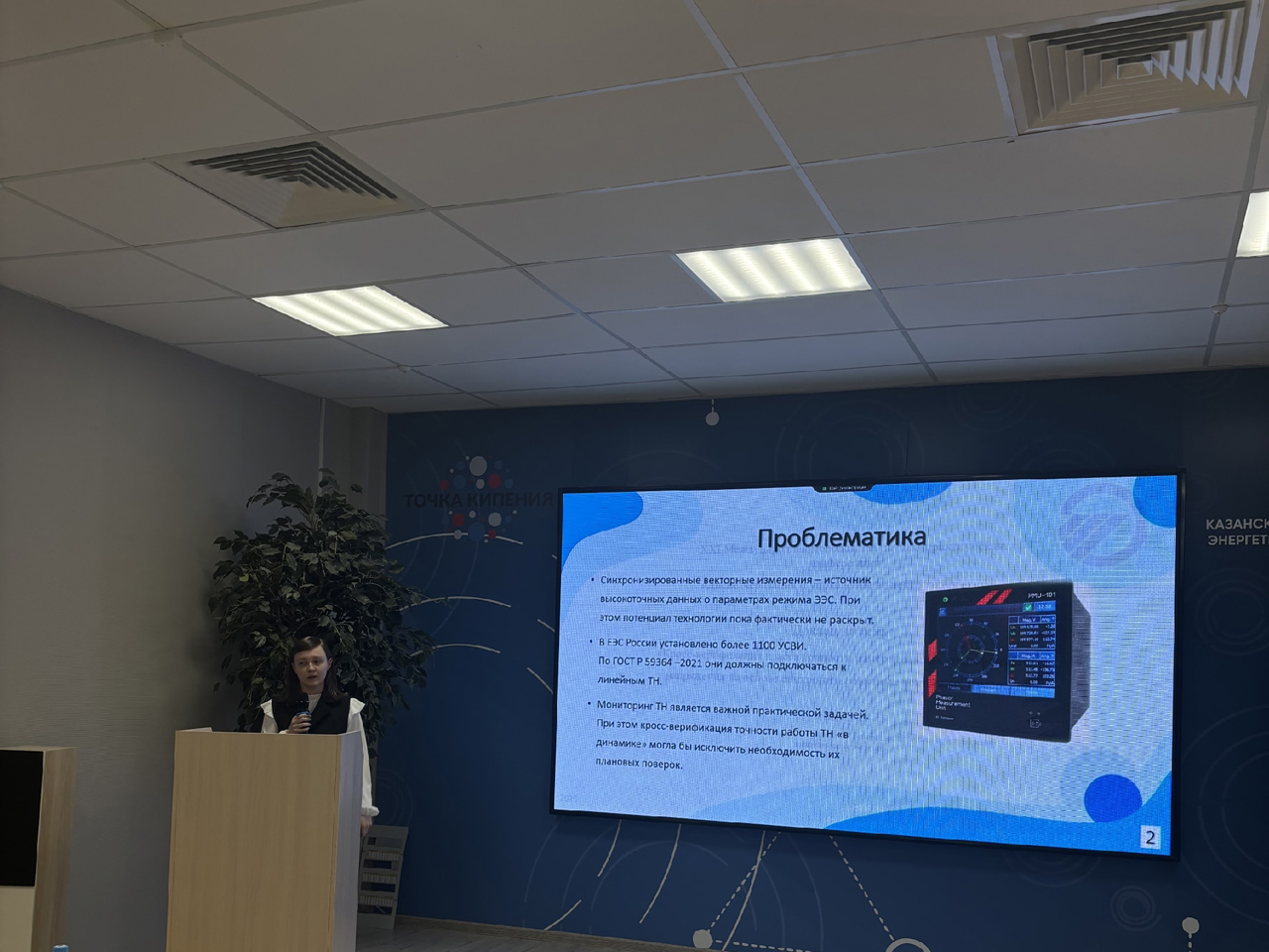 Магистрантка кафедры электрических систем Калашникова Анастасия (группа 1-23м) в секции о цифровизации выступила с докладом на тему «Кросс-верификация класса точности измерительных трансформаторов напряжения на основе синхронизированных векторных измерений». Экспертная комиссия высоко оценила работу Анастасии и присудила ей 2-е место.