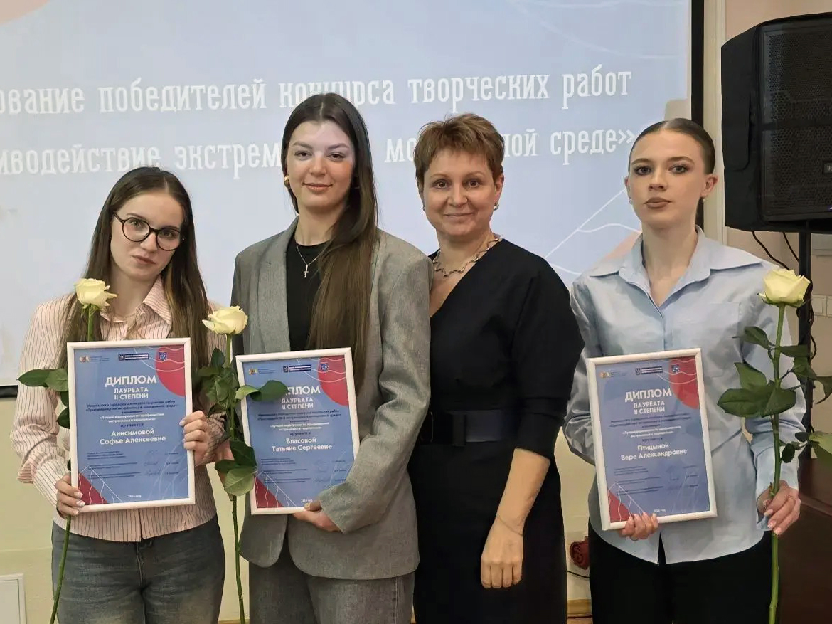 Лауреаты II степени – Татьяна Власова, Вера Птицына, Софья Анисимова (номинация «Лучший видеоролик по профилактике экстремизма и терроризма»),